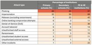 The report highlights that phishing is by far the most prevalent attack across all educational settings, but other threats increase in frequency in secondary and FE and HE settings.