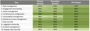 The table below summarises the proportion of educational institutions taking action across each of the NCSC’s 10 Steps to Cyber Security, according to the Survey: